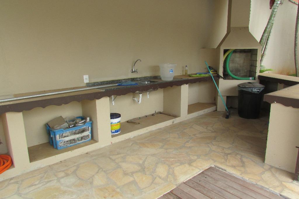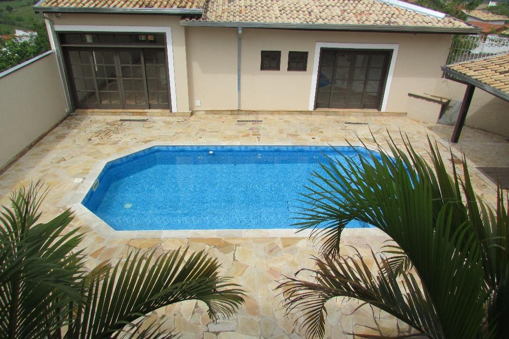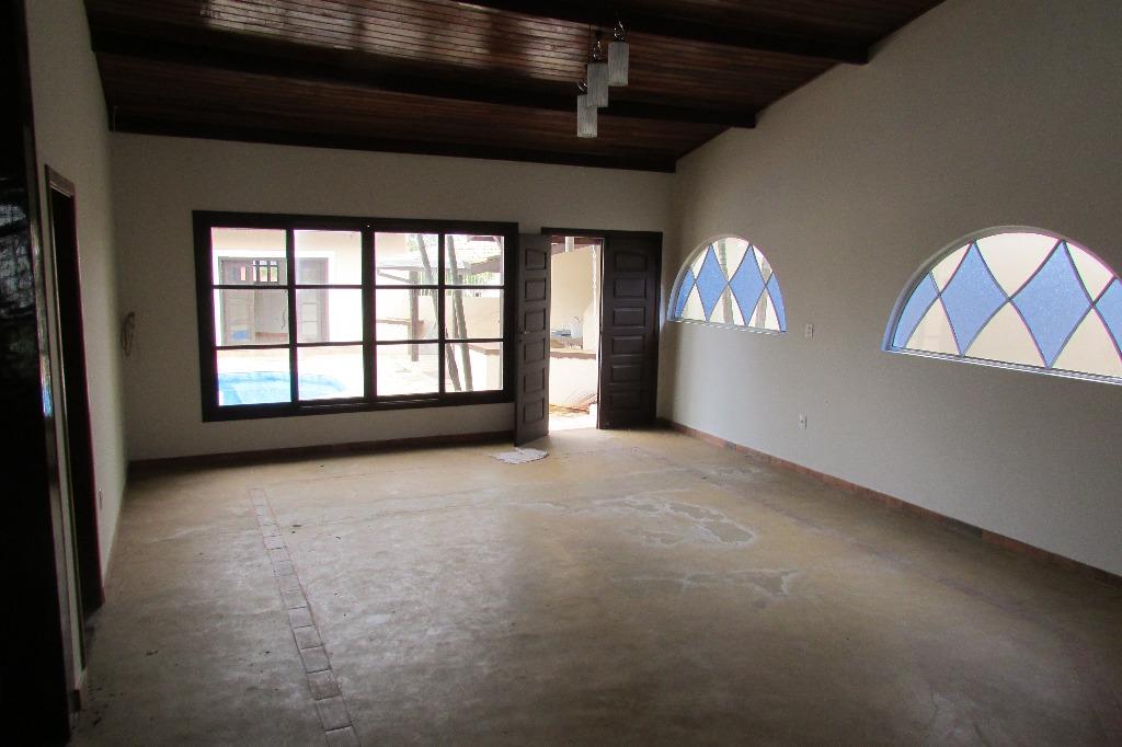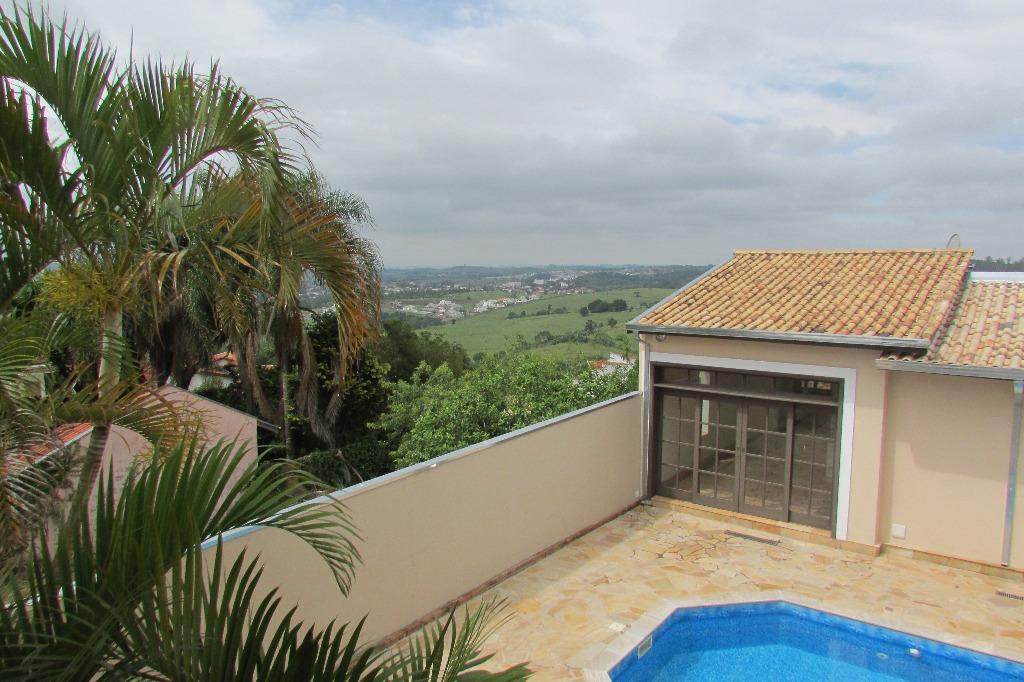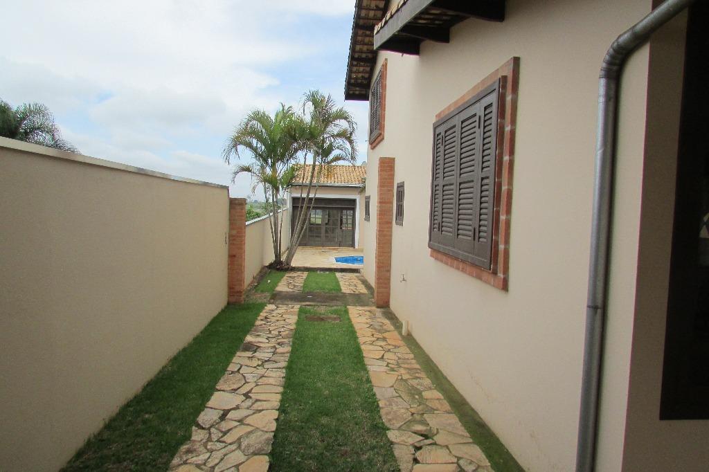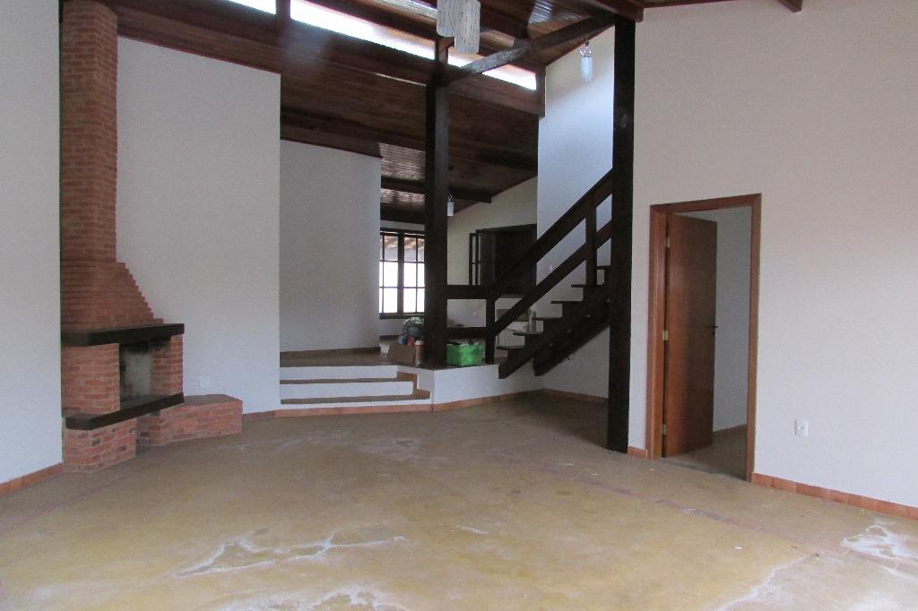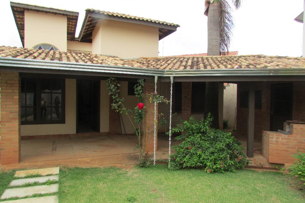 Casa em estilo rústico no Condomínio San Conrado.São 3 suítes, sendo 2 no térreo e 1 no andar superior.Duas salas, sendo uma muito ampla com lareira, pé direito duplo, vitrais e piso em cimento queimado. Lavabo.Cozinha e área de serviço.Garagem para vários veículos.Lazer com piscina, churrasqueira, forninho e fogão à lenha.Quintal com paisagismo.Edícula com mais três dormitórios, um wc e duas salas.Área de serviço. Analisa proposta com imóvel de menor valor.