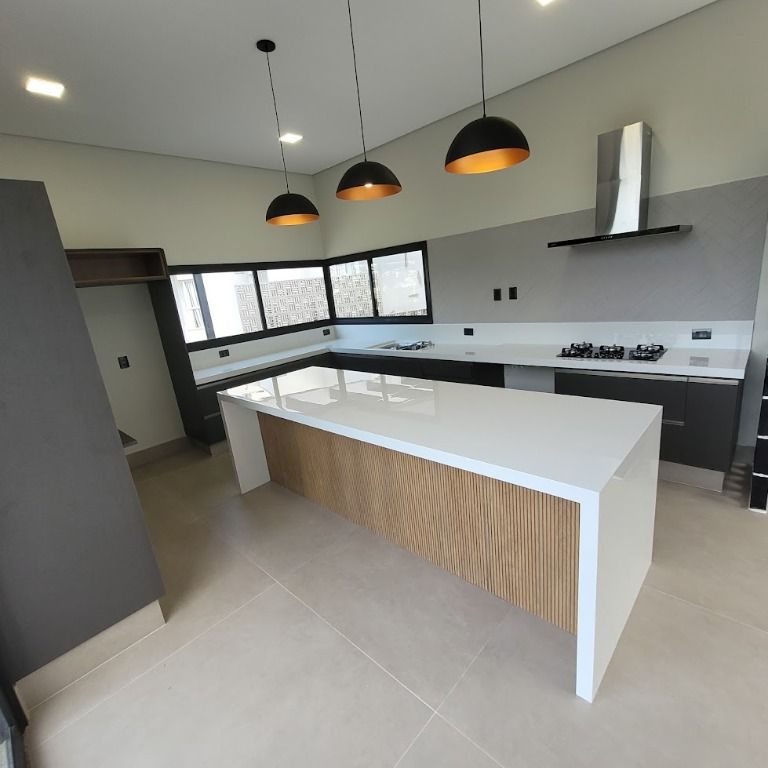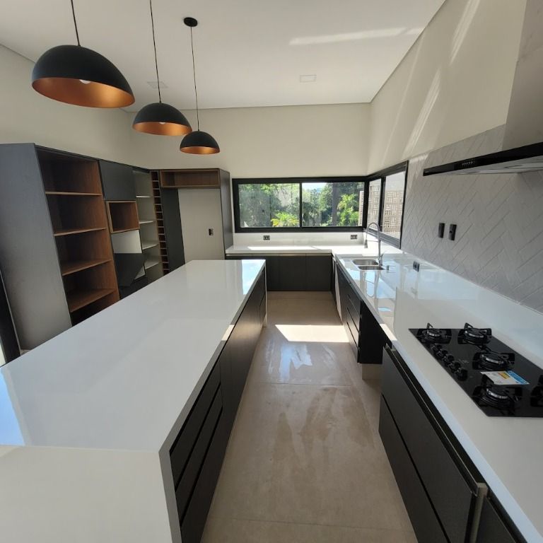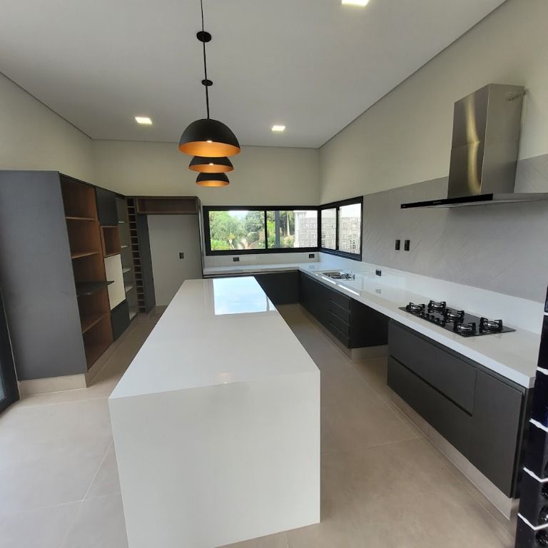 -Localização excelente dentro do condomínio. Vista livre e próximo portaria;-Projeto moderno, ambientes integrados e acabamento alto padrão;-Geração de energia elétrica/Fotovoltáica;-Água quente e fria instalada com placa solar. Boiler de 600 litros ;-Pisos e revestimentos Portinari ( Sala 1,20 x 1,2m ) , Ceusa , Eliane ou Porto Belo;-Piscina em alvenaria revestida com pastilhas Atlas + hidro + iluminação LED;-Construída em L.S.F (Light Steel Frame) - o sistema mais moderno do mundo;-Proteção termo-acústico de alta tecnologia;-Obra ecológica com economia de energia;-Cozinha completa com armários planejados de alto padrão;