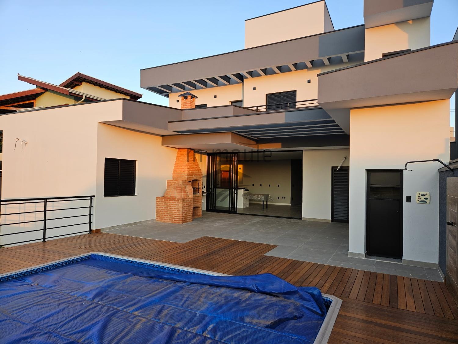 Esta espaçosa residência recém construída possui 5 suítes, sendo 3 localizadas no andar superior e 2 no térreo, além de uma cozinha moderna integrada à sala de estar e jantar, que conta com pé-direito alto e lareira. A propriedade dispõe de sistema de energia fotovoltaica, garantindo eficiência energética. O exterior apresenta uma elegante piscina com um amplo deck em uma área gourmet completa com uma vista linda que proporciona um por do sol imperdível! Todos os ambientes possuem instalação preparada para ar-condicionado. No pavimento superior encontram-se 3 suítes, incluindo sacada privativa, escritório e varanda, enquanto o térreo abriga mais 2 suítes, sendo um anexo independente com suíte completa . A casa conta ainda com marceneira de alto padrão na cozinha e banheiros, documentação em ordem.